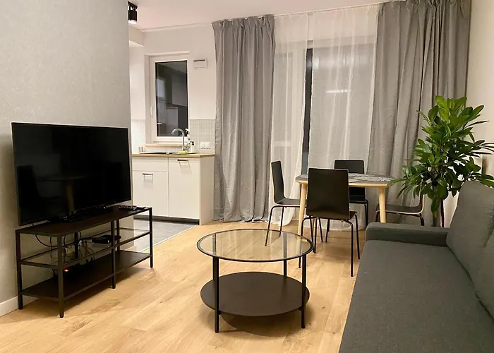 Apartament znajduje się prawie 15 min autem od Parku Wodnego Moczydła. Centrum Handlowe Wola Park znajduje się prawie 15 min autem od 1-pokojowego apartamentu.